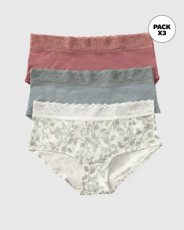 Paquete x3 brasilera en algodón elástico con detalle en encaje