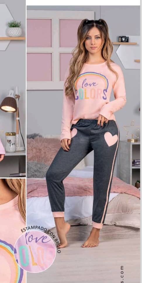 Pijama Botones Manga Larga y Pantalón